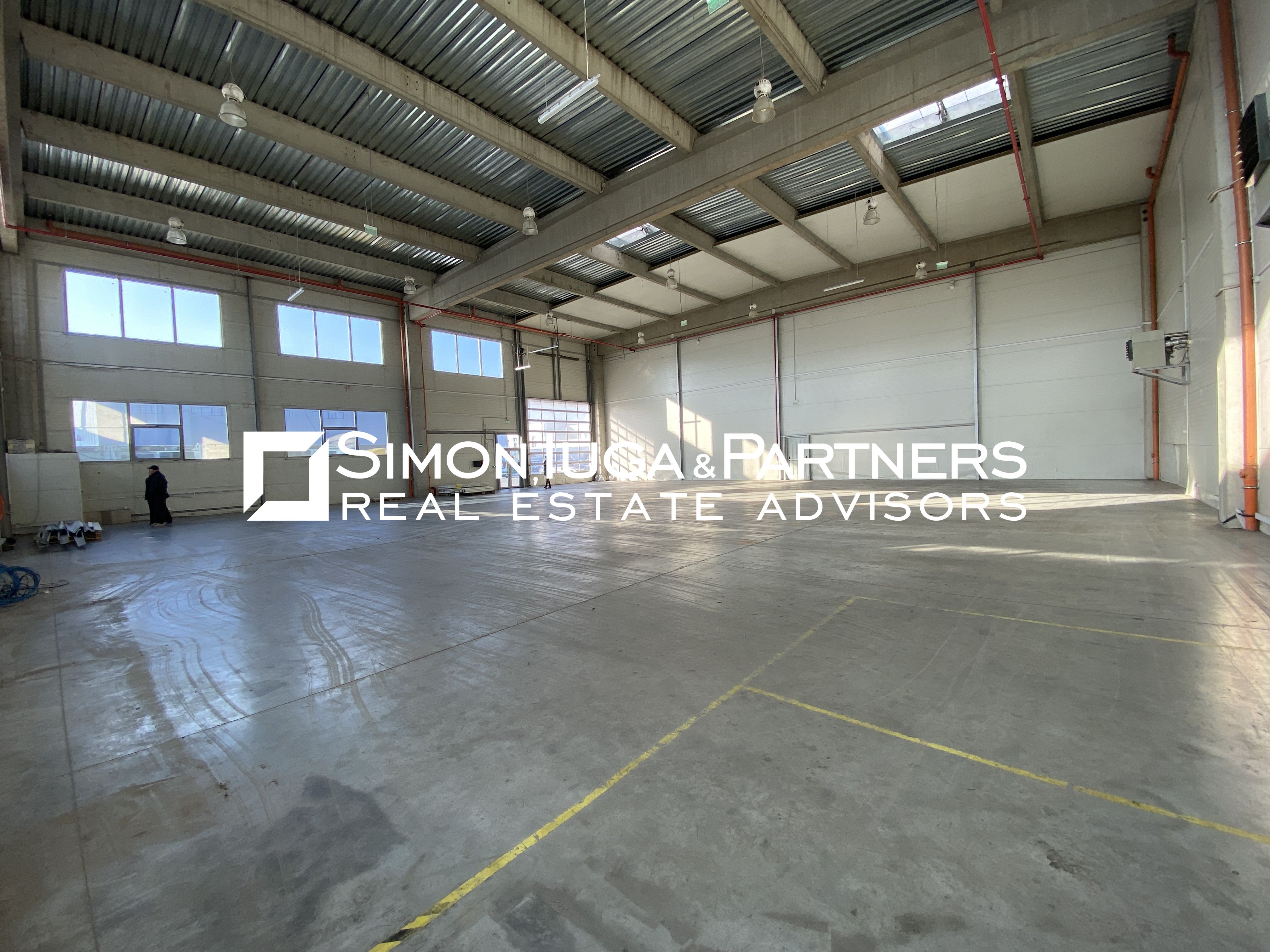 Inaltimea halei este de 8 m. Portile de acces sunt instalate si functionale.