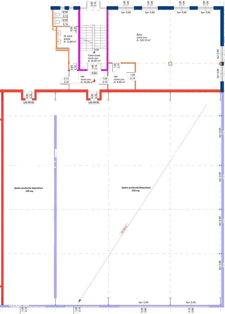 Caracteristici hala productie/depozitare: Pardoseala: beton industrial Inaltime utila: 7,5 – 10 m Acces: 2 porti tip drive-in Sistem incalzire/racire: aeroterme cu agent termicI luminat: natural + artificial (corpuri LED performante)